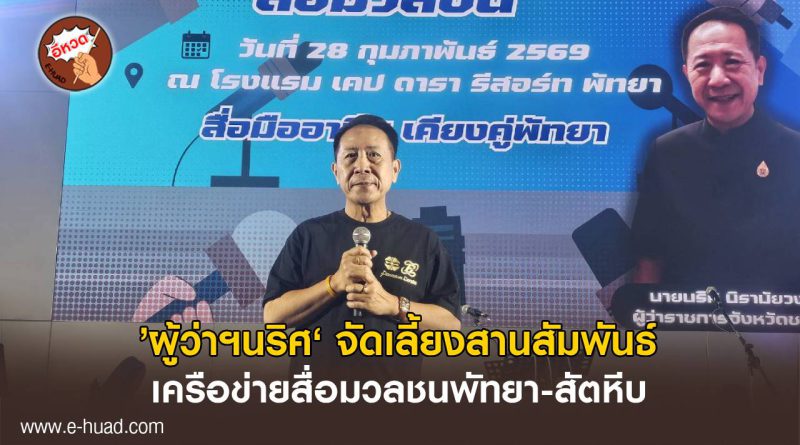 ข่าวทั่วไป 1 มีนาคม 2026 admin ’ผู้ว่าฯนริศ‘ จัดเลี้ยงสานสัมพันธ์เครือข่ายสื่อมวลชนพัทยา-สัตหีบ ช่วยขีดเขียนเพื่อสังคมชลบุรี ช่วงค่ำ วันที่ 28 ก. Read More