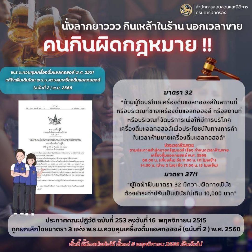 วันที่ 6 ตุลาคม 2568 เวลา 13.00 น. นำโดยนางลิซ่า แฮมมินตัน นายกสมาคมผู้ประกอบความธุรกิจกลางคืนพร้อมด้วยคณะกรรมการเข้าพบดร.ประทุม วงศ์สวัสดิ์สมาชิกวุฒิสภาจังหวัดชลบุรี ในฐานะรองประธานคณะกรรมการท่อง มาชิกการท่องเที่ยวและการกีฬาวุฒิสภาเพื่อยื่น หนังสือ ขอให้ภาครัฐทบทวนข้อกฎหมาย มาตรา 32 ซึ่งระบุว่า” ห้ามท่านใดบริโภคเครื่องดื่มและแอลกอฮอล์ ในจะสถานที่หรือบริเวณที่จำหน่ายเครื่องดื่มแอลกอฮอล์ หรือสถานที่ ที่จัดบริการ จำหน่ายเครื่องดื่ม เพื่อให้มี การบริโภค เครื่องดื่มแอลกอฮอล์ เพื่อประโยชน์ในการค้า ในบริเวณห้ามขายแอลกอฮอล์
