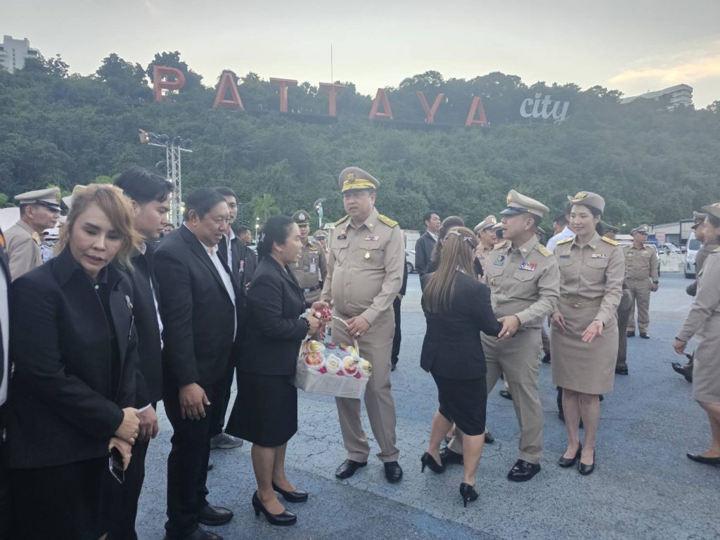 ทั้งนี้ ในนามจังหวัดชลบุรี โดยนายนริศ นิรามัยวงศ์ ผู้ว่าราชการจังหวัดชลบุรี นายชัยพร แพภิรมย์รัตน์ และนายพงศ์ธสิษฐ์ ปิจนันท์ รองผู้ว่าราชการจังหวัดชลบุรี พล.ต.ต.ชาตรี สุขศิริ ผู้บังคับการอำนวยการตำรวจภูธรภาค 2 พันเอกประเสริฐ ใจกล้า รองผู้บัญชาการมณฑลทหารบกที่ 14 หัวหน้าส่วนราชการ หน่วยงานความมั่นคง ตำรวจ ทหาร เมืองพัทยาและภาคเอกชนที่เกี่ยวข้อง เข้าร่วมในพิธี