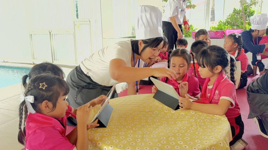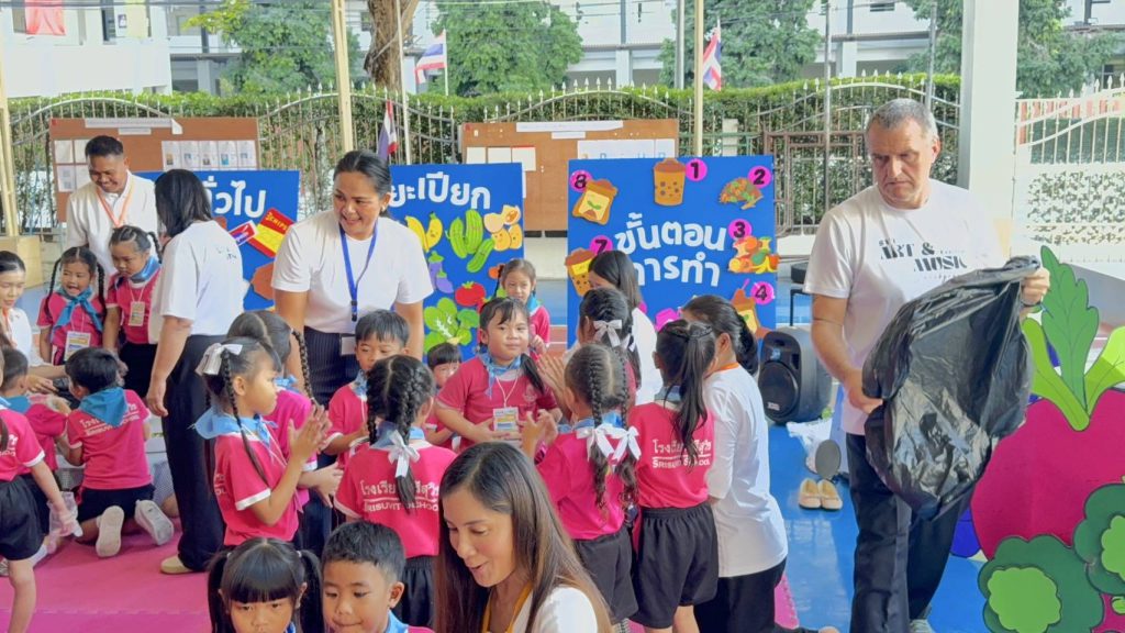 3.มิติด้านการคิดคำนวณ “Food Shelf Life“สอนวิธีใช้เงินซื้ออาหาร ดูคิวอาร์โค้ดวันหมดอายุสินค้า ระบบการจ่ายเงิน-ทอนเงิน และ 4.มิติด้านศิลปะและภาษา “จากจานสู่ผืนผ้า สร้างงานศิลป์” ให้นักเรียนฝึกสร้างสรรค์งานพิมพ์กระเป๋าด้วยผักและผลไม้