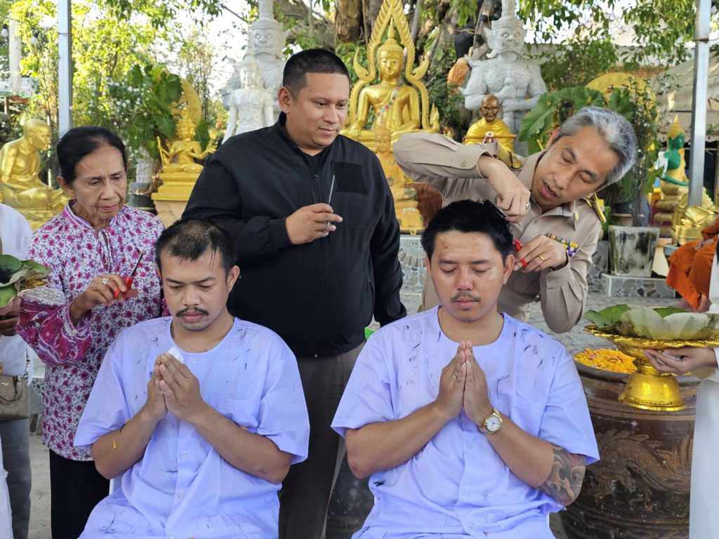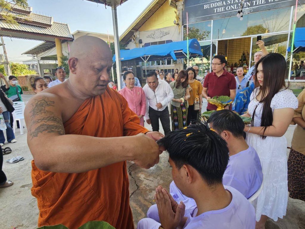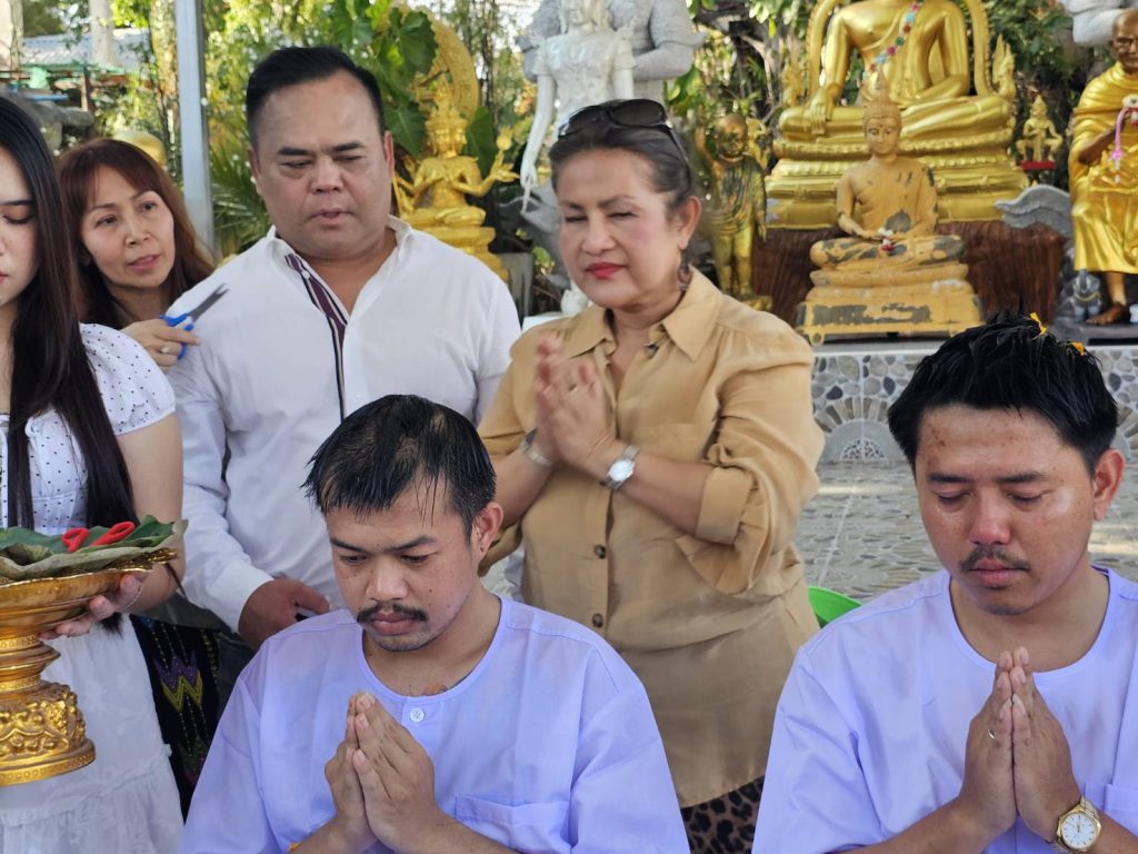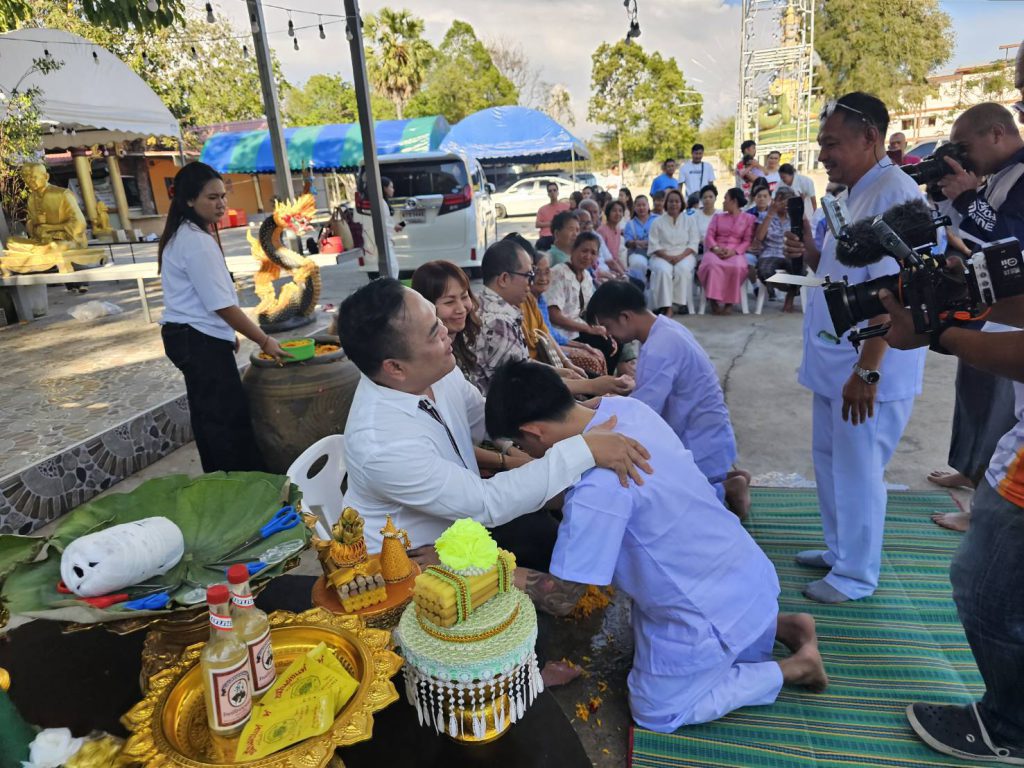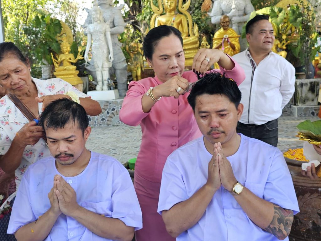 สาธุชนร่วมพิธีอุปสมบทหลานชาย ประธาน กต.ตร.สภ.เมืองพัทยา ที่วัดเขาบุญมีดาราราม