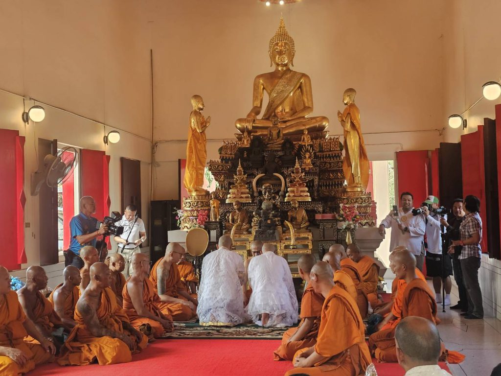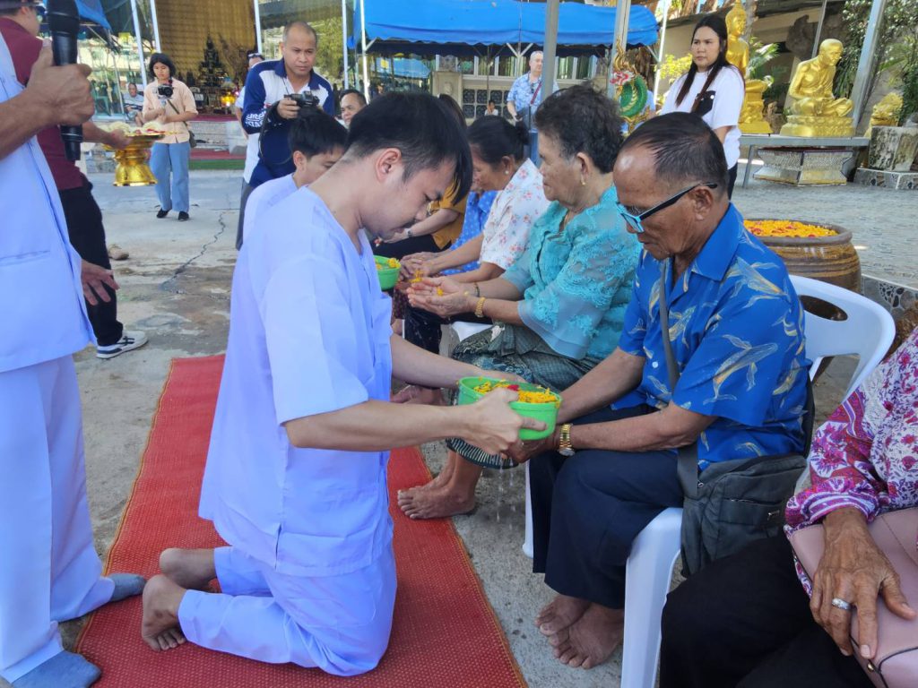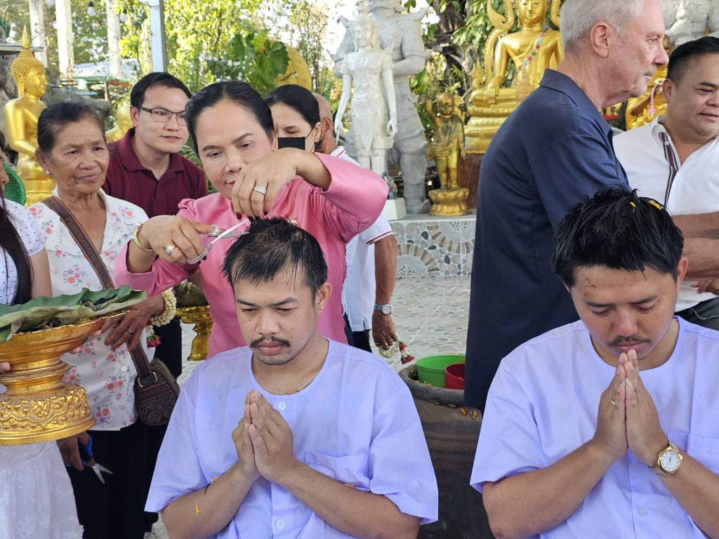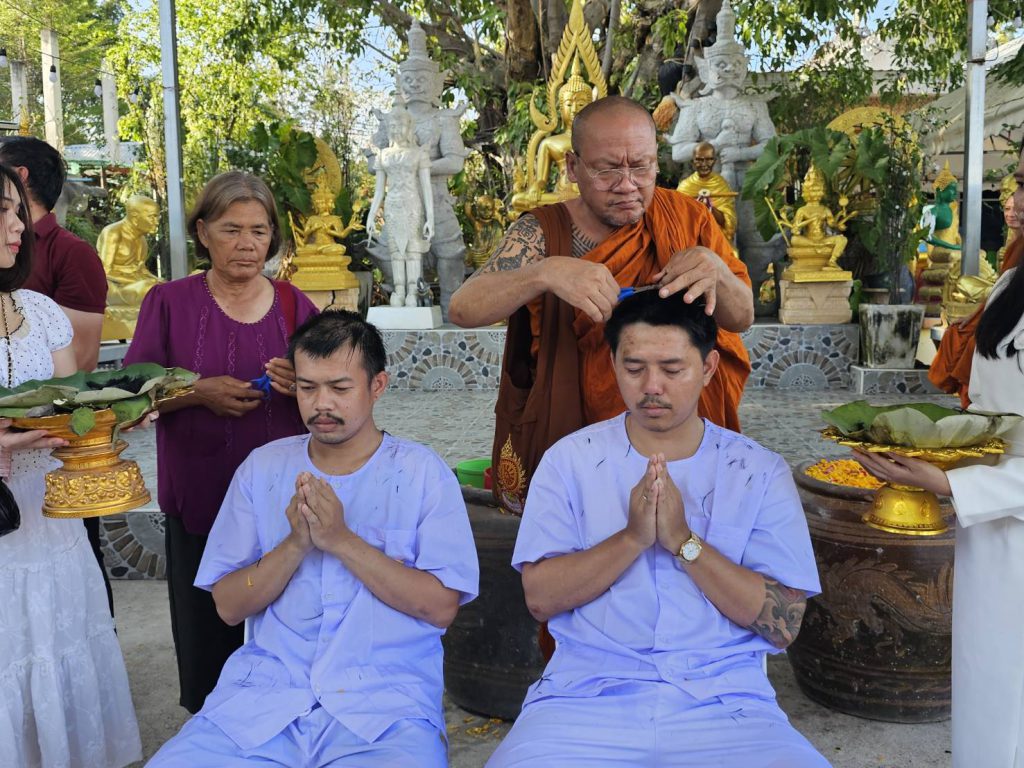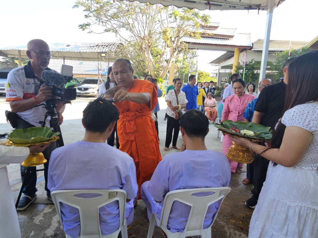 สาธุชนร่วมพิธีอุปสมบทหลานชาย ประธาน กต.ตร.สภ.เมืองพัทยา ที่วัดเขาบุญมีดาราราม